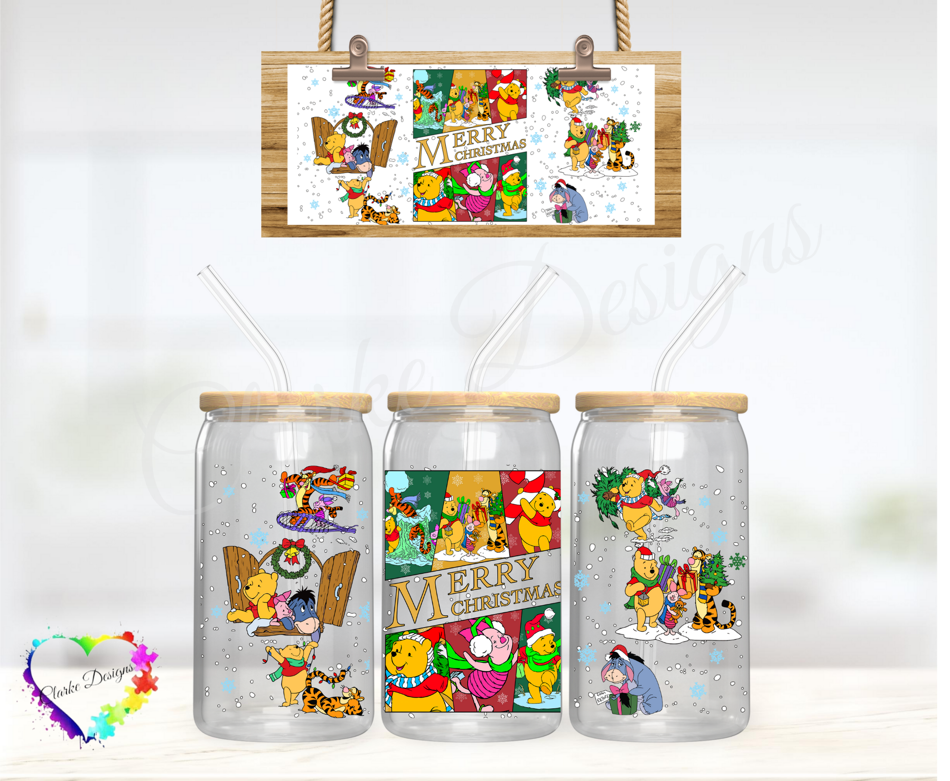 Merry Christmas Pooh Bear - 16oz Libbey UV DTF Wrap
