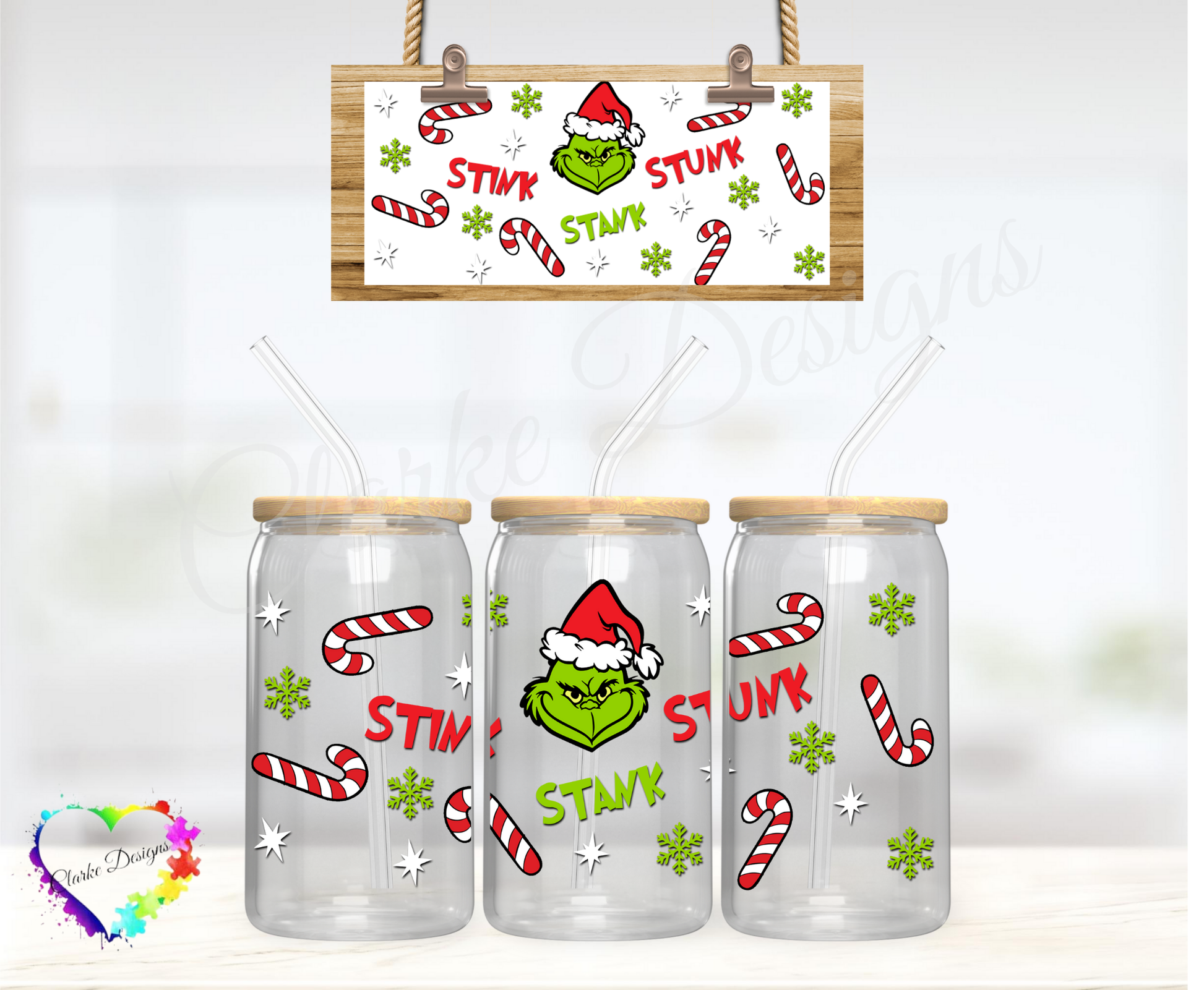 Grinch Stink Stank Stunk - 16oz Libbey UV DTF Wrap