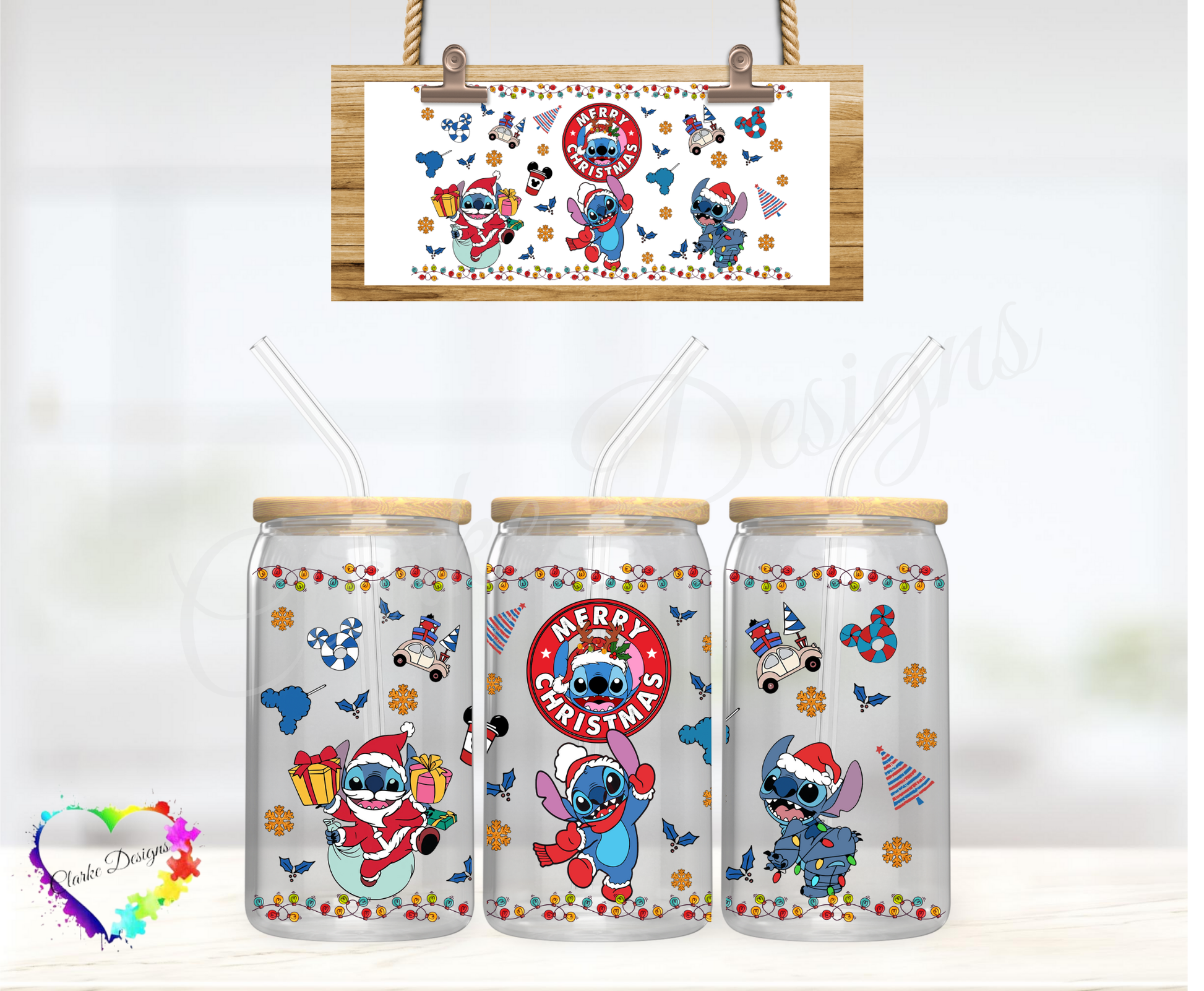 Merry Christmas Stitch - 16oz Libbey UV DTF Wrap