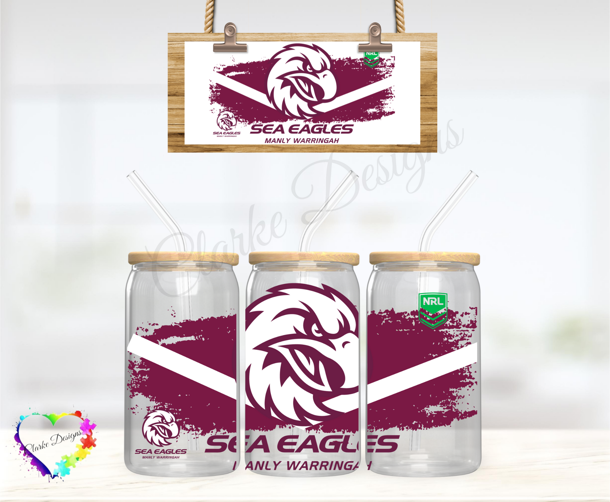 NRL Sea Eagles - 16oz Libbey UV DTF Wrap